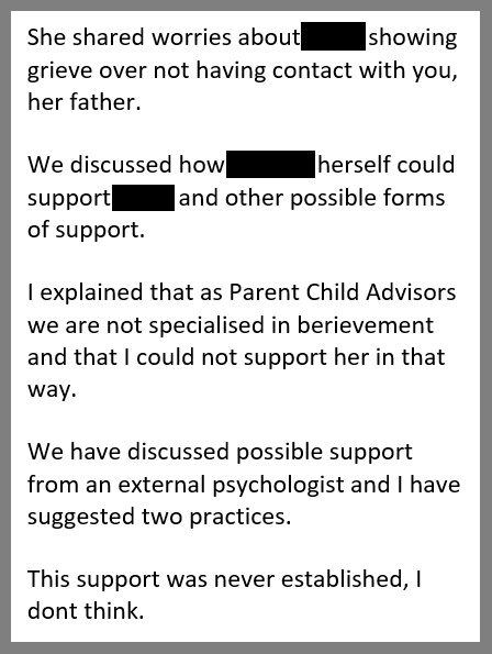 Four years after the child lost her father she went through a grieving process and then developed signs of parental alienation.